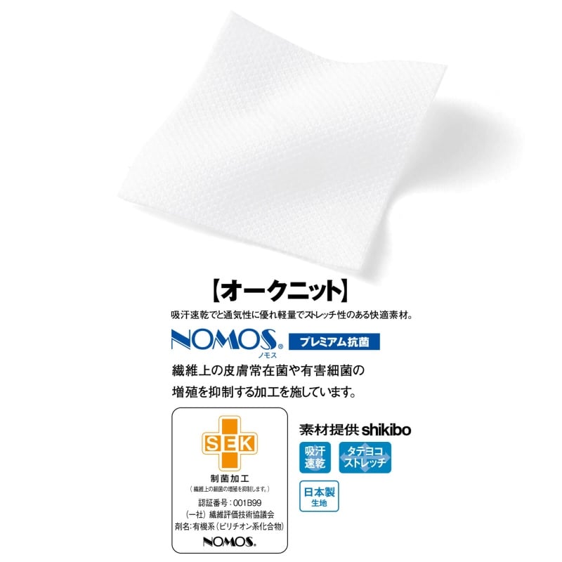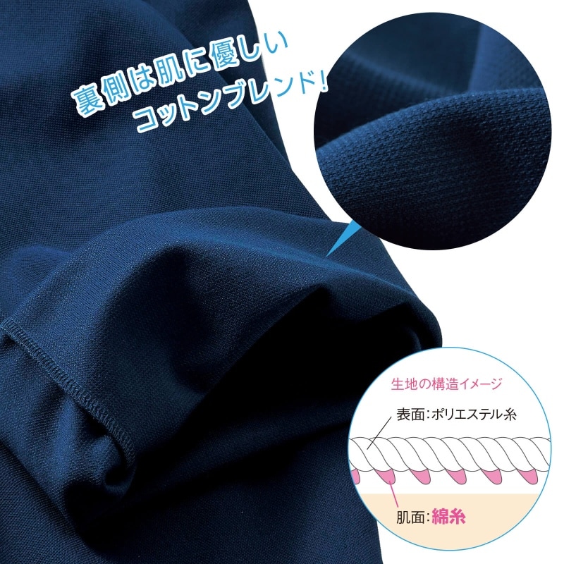 吸汗速乾と通気性に優れ軽量でストレッチ性のある快適素材。