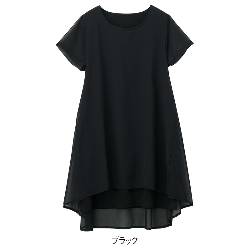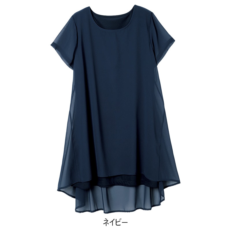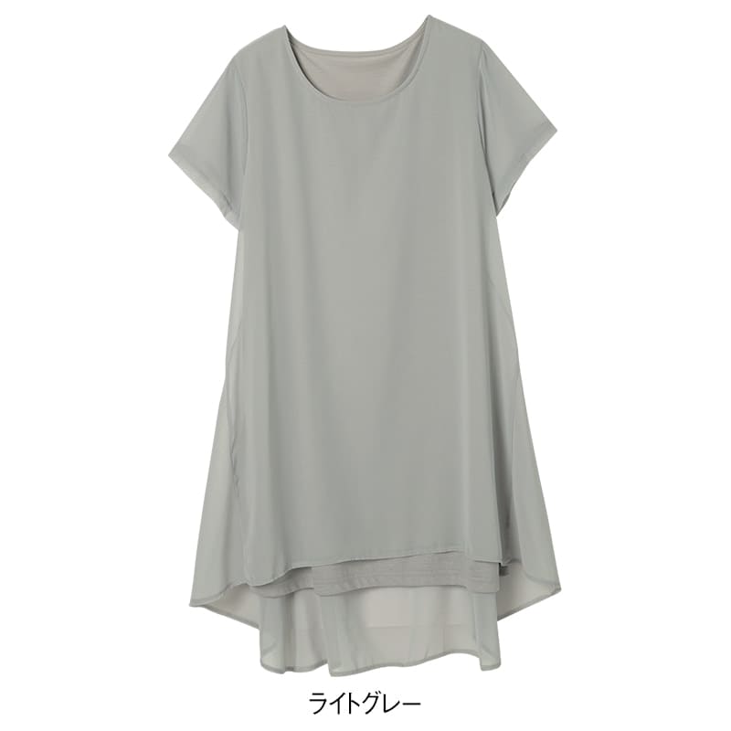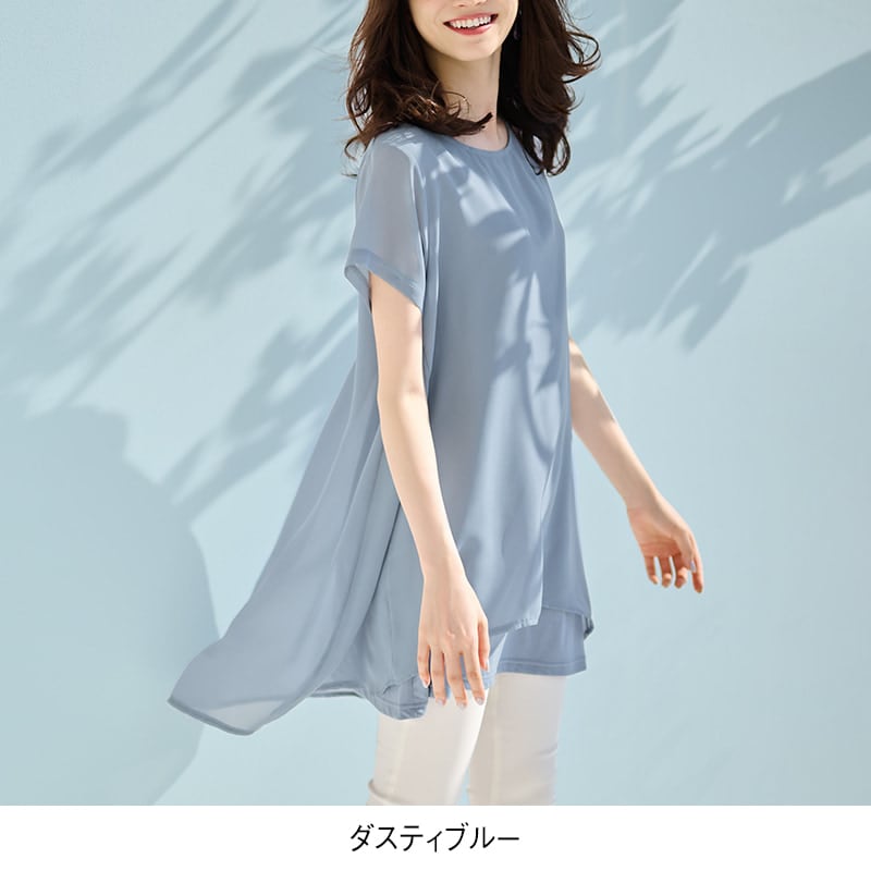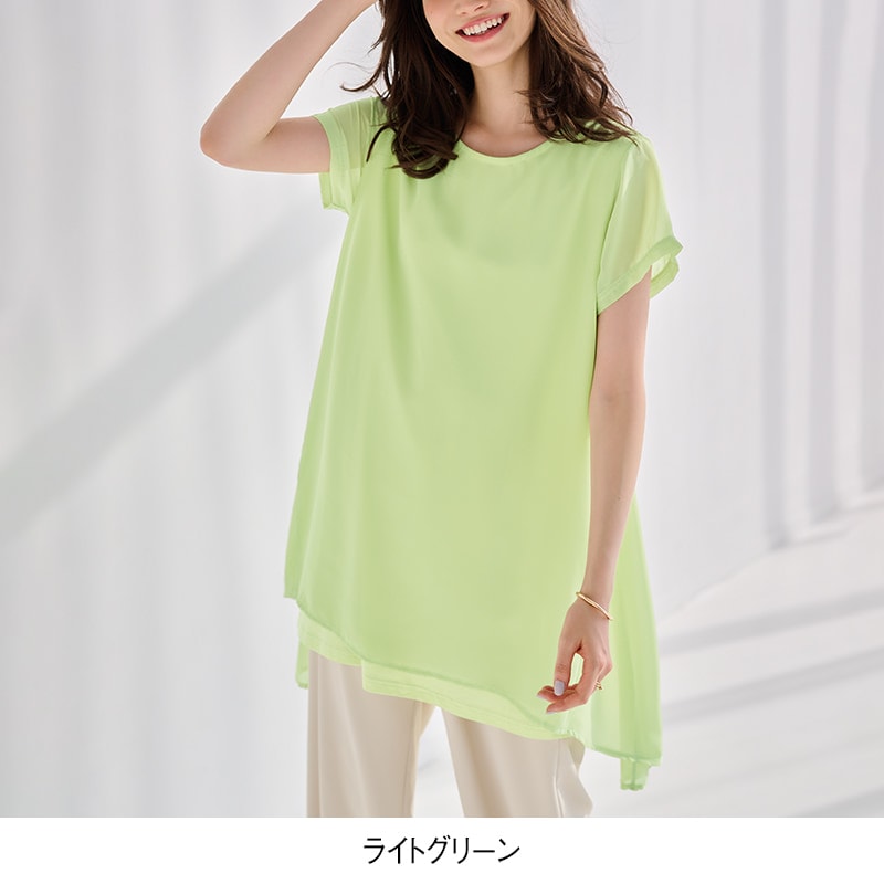 上身頃はシフォン、インナー部分はカットソーの2枚重ねで仕上げた異素材チュニック。