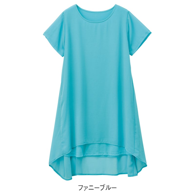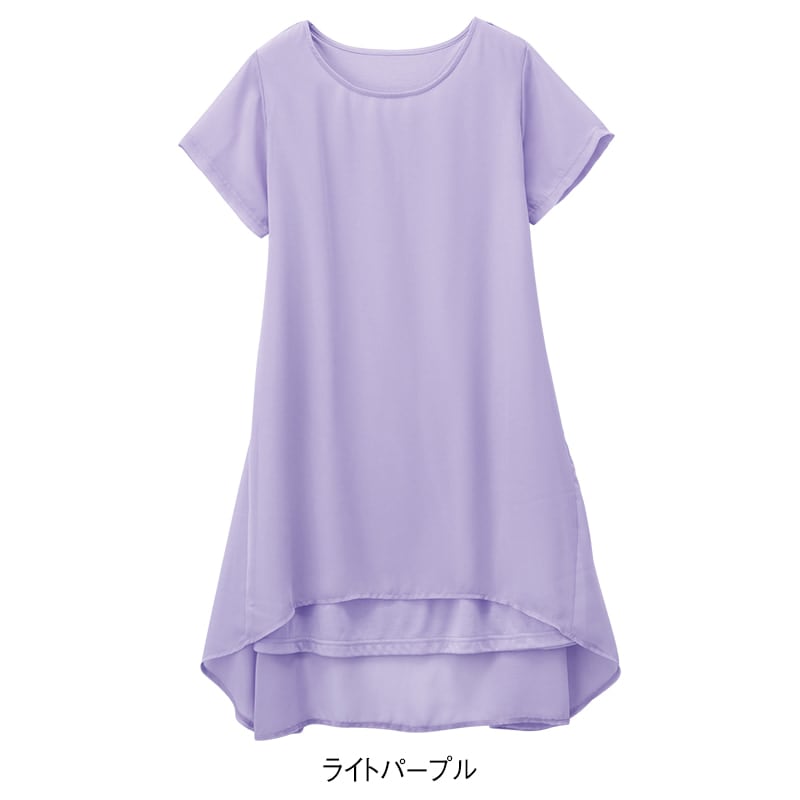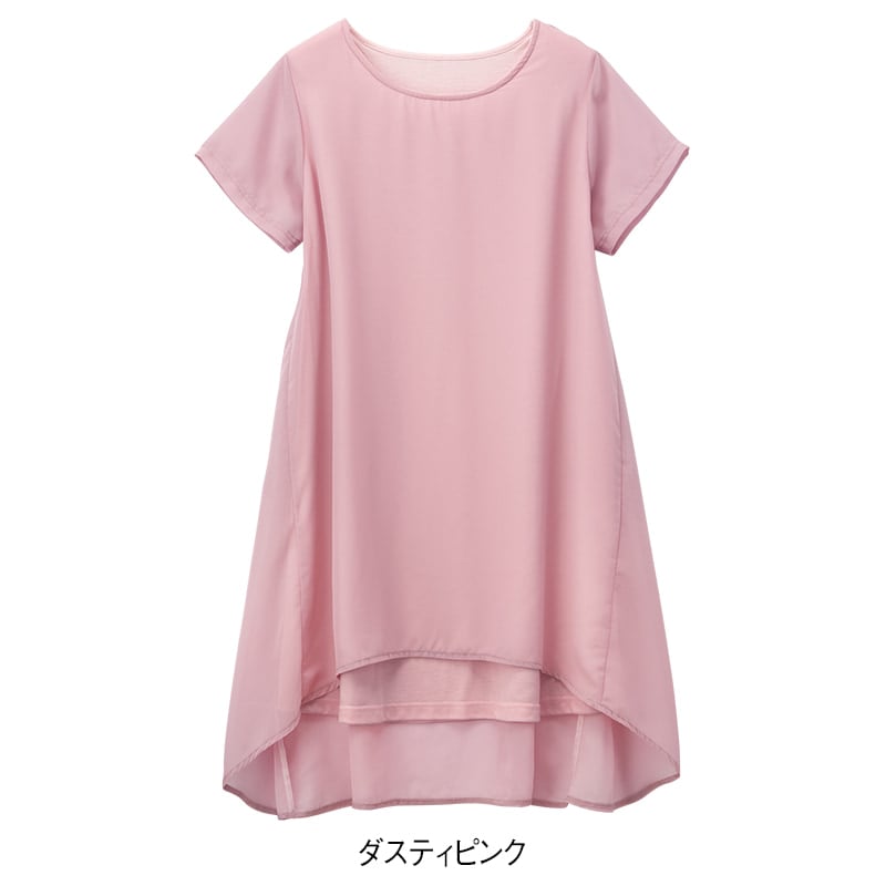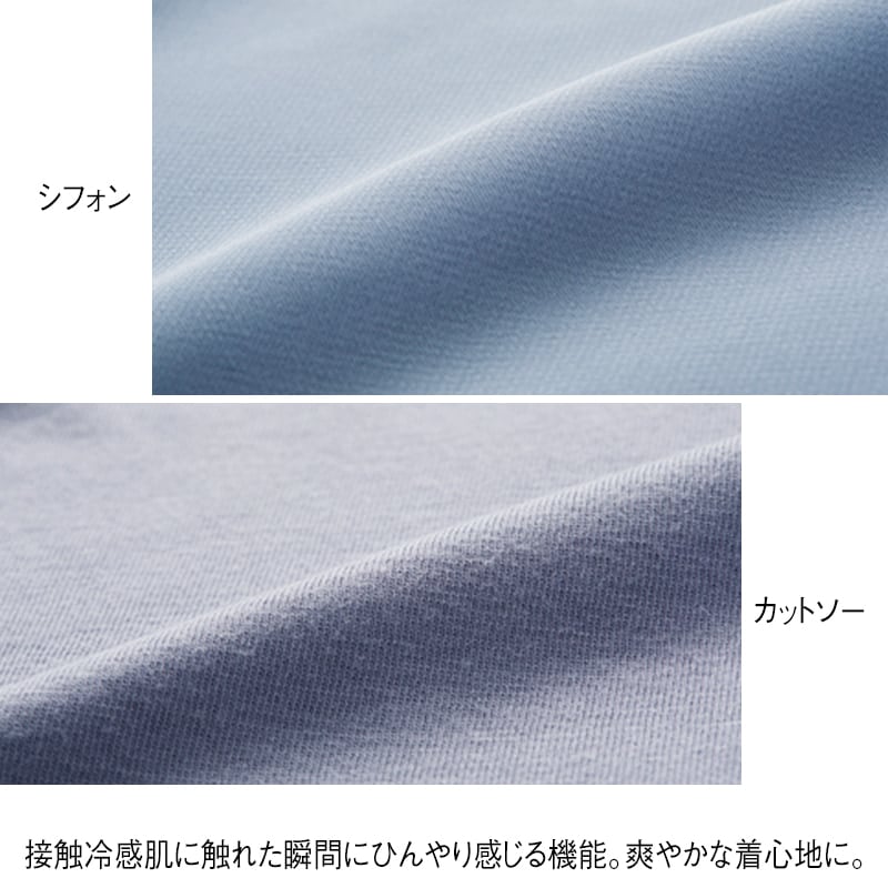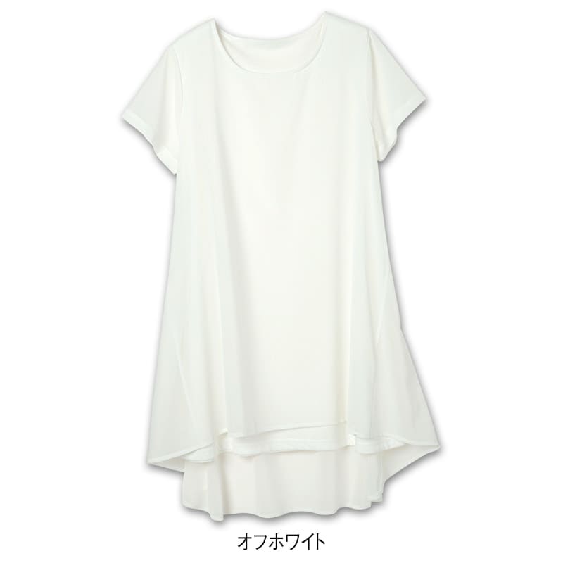 上身頃はシフォン、インナー部分はカットソーの2枚重ねで仕上げた異素材チュニック。