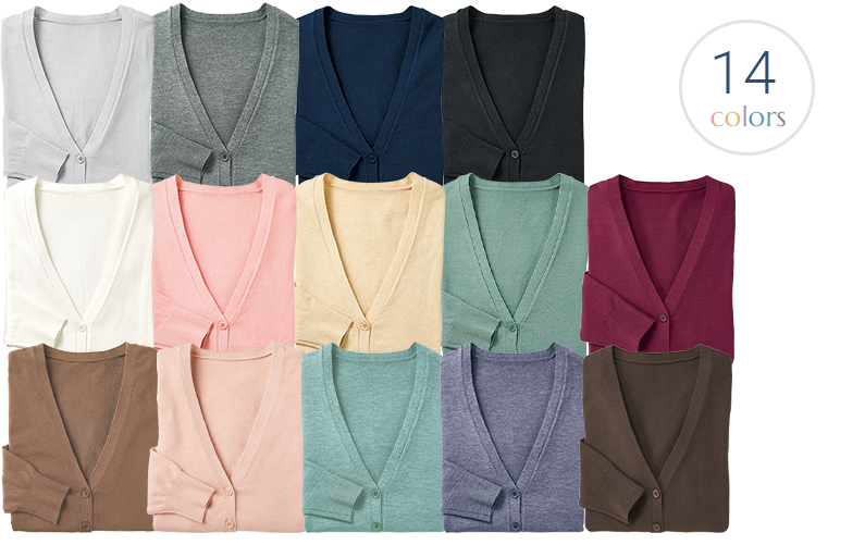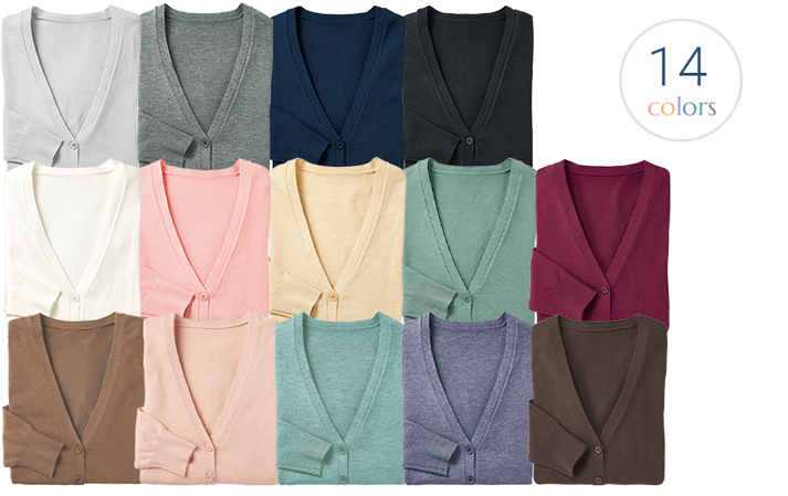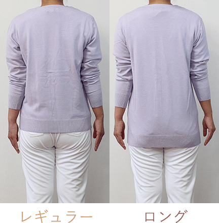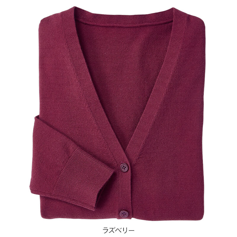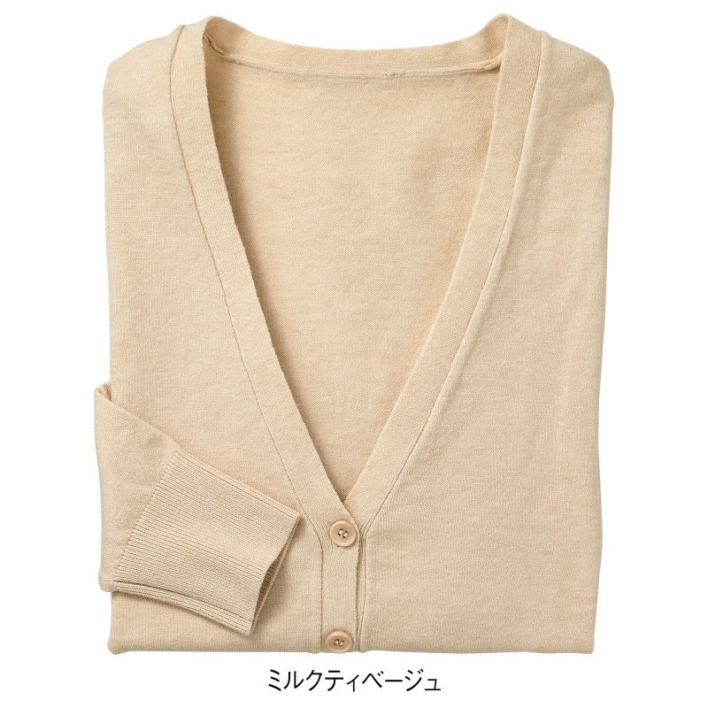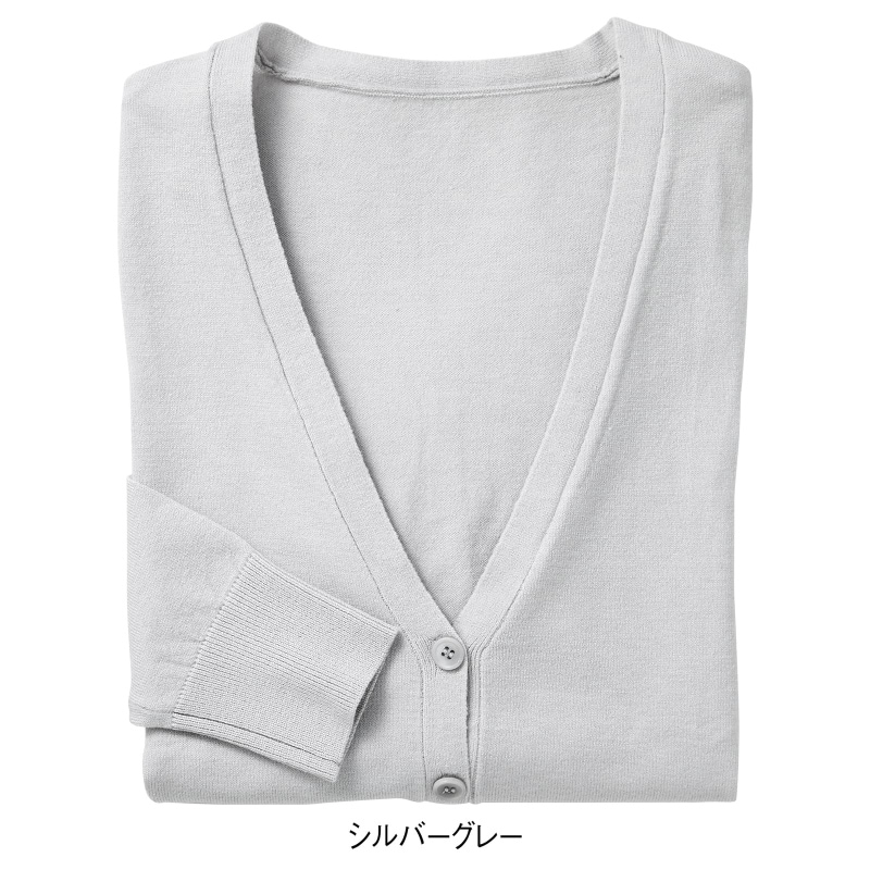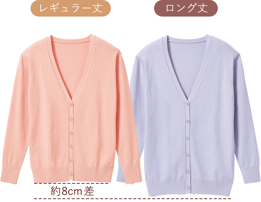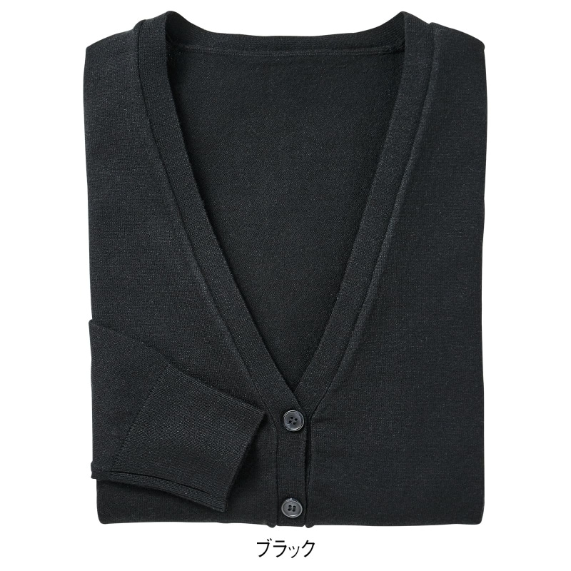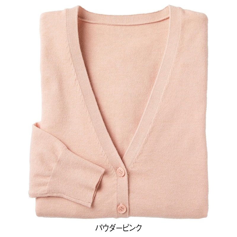 一般的なカーディガンより少しゆったりめ、ナース服のジャケット襟を出しやすいようにVネックは深め、また「袖をまくることが多い」ことを想定して、袖がずれにくいようにリブ幅が広めでフィットしやすいデザインです。