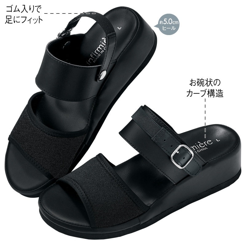 職場用で履いていたサンダルがボロボロになったので新しく購入。足が浮腫みやすかったのですが、あまり浮腫まない気がします。仕事中に取る水分や昼食にもよると思うのですが、前のサンダルとは全然違います。シンプルで事務職にも向いてるデザインだと思います。投稿者:ちゃん123456性別/属性:法人年代:身長(cm):161~165体重(kg):56~60購入したサイズ:ブラック/L(23.5~24.0) -