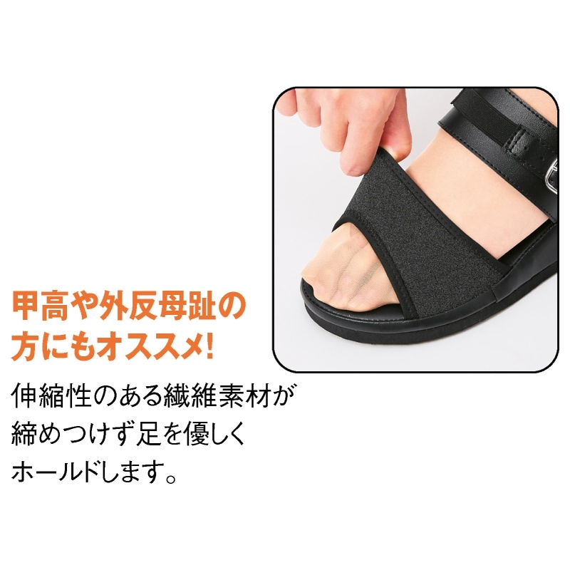 伸縮性のある繊維素材が締めつけず足を優しくホールドします。