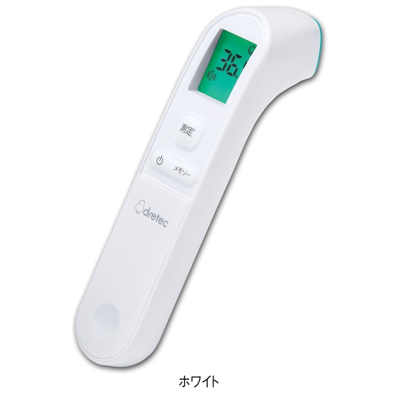発熱表示機能付きで~37.4℃(緑)、37.5~37.9℃(黄)、38.0℃~(赤)に点灯します