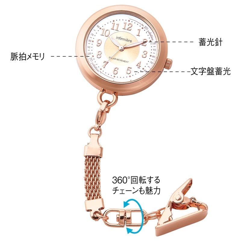 - ●素材/ケース:亜鉛合金、チェーン・クリップ:スチール、風防:ミネラルガラス