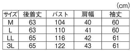 - ●裏地付、ファスナー前、ポケット有、袖口・裾ゴム入