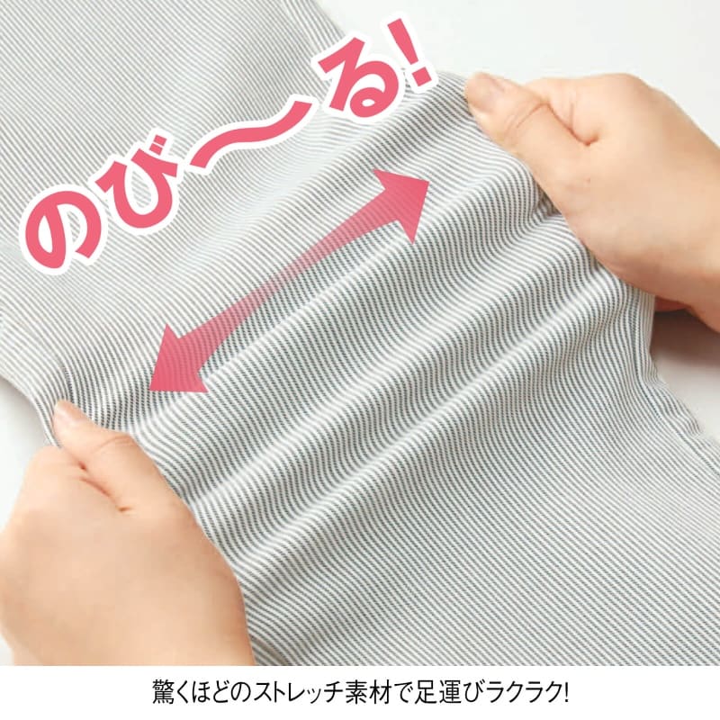 - ●素材/表側(ブラック、モカ):綿57%、ナイロン38%、ポリウレタン5% 表側(ストライプ):レーヨン58%、ナイロン37%、ポリウレタン5% 裏側:ナイロン87%、ポリウレタン13%