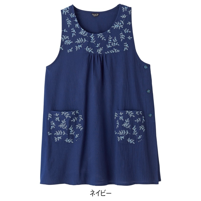 コットンナチュラルリーフ刺繍チュニックエプロン