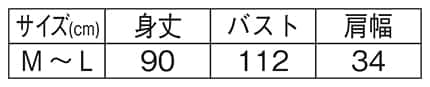 コットンナチュラルリーフ刺繍チュニックエプロンのサイズ表