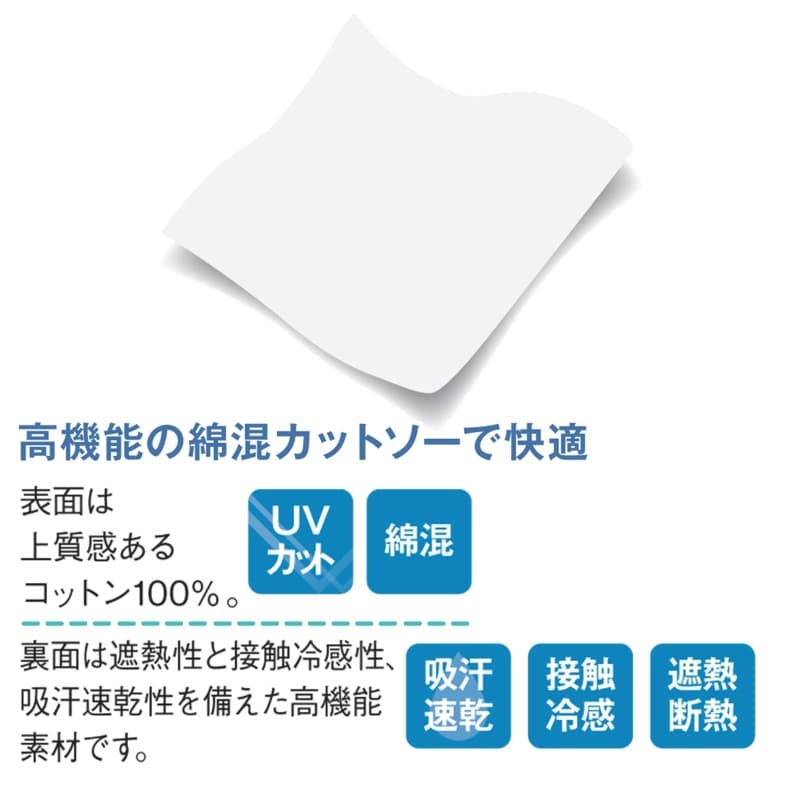 裏面は遮熱性と接触冷感性、吸汗速乾性を備えた高機能素材です。