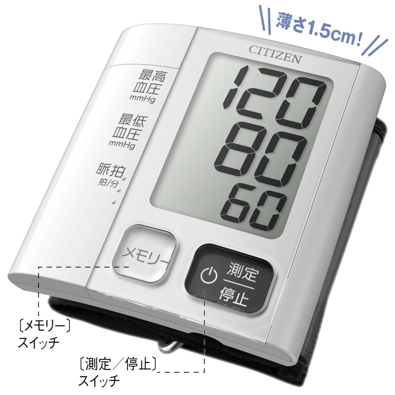 薄さ1.5cmで納得の高機能!!持ち運びにも便利な薄型血圧計