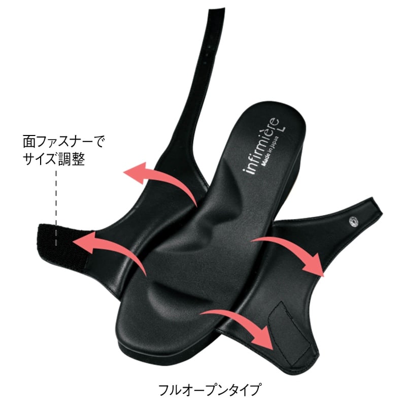 このナースサンダルのデザインが気に入って、さらに、外反母趾や甲高でもあるので、マジックテープで調整出来ると思い、購入しましたが、右側のサンダルのマジックテープがしっかりと元の布にくっついてなくて歩けませんでした。不良品だったのかしら。交換をしようと思いましたが、もしかしたらしっかりマジックテープがくっつかないのかもと思い返品しました。とっても残念です。そしてサンダルにクッションがありませんでした。投稿者:マイルド性別/属性:女性年代:50代身長(cm):151~155体重(kg):購入したサイズ:ブラック/L(23.5~24.0) -