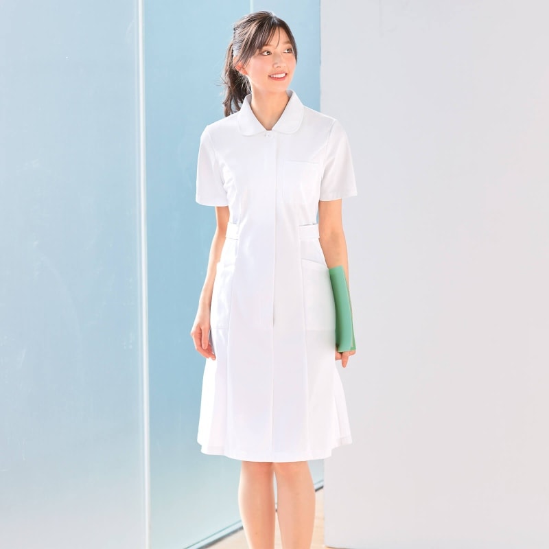 - > ★ソフトピケ綿混トリコット ウエストベルト衿付きワンピース