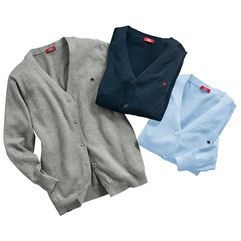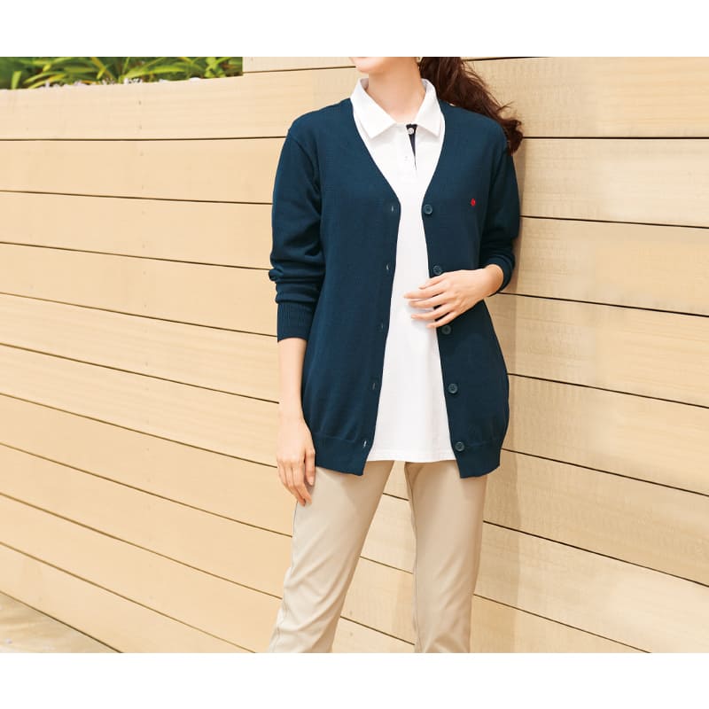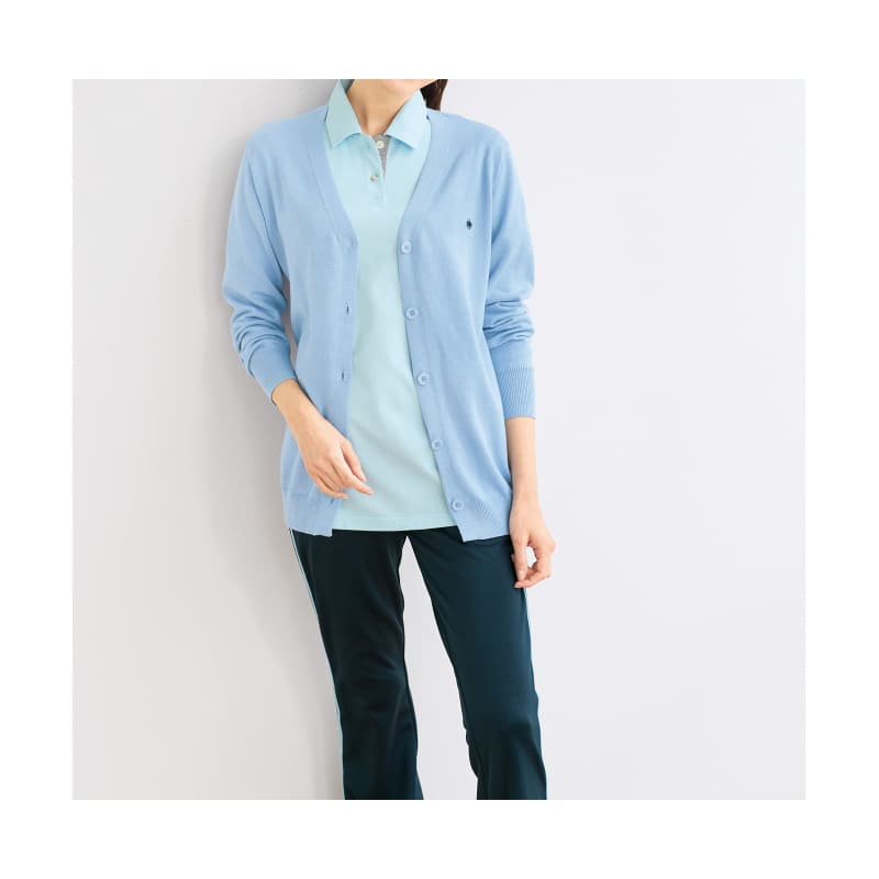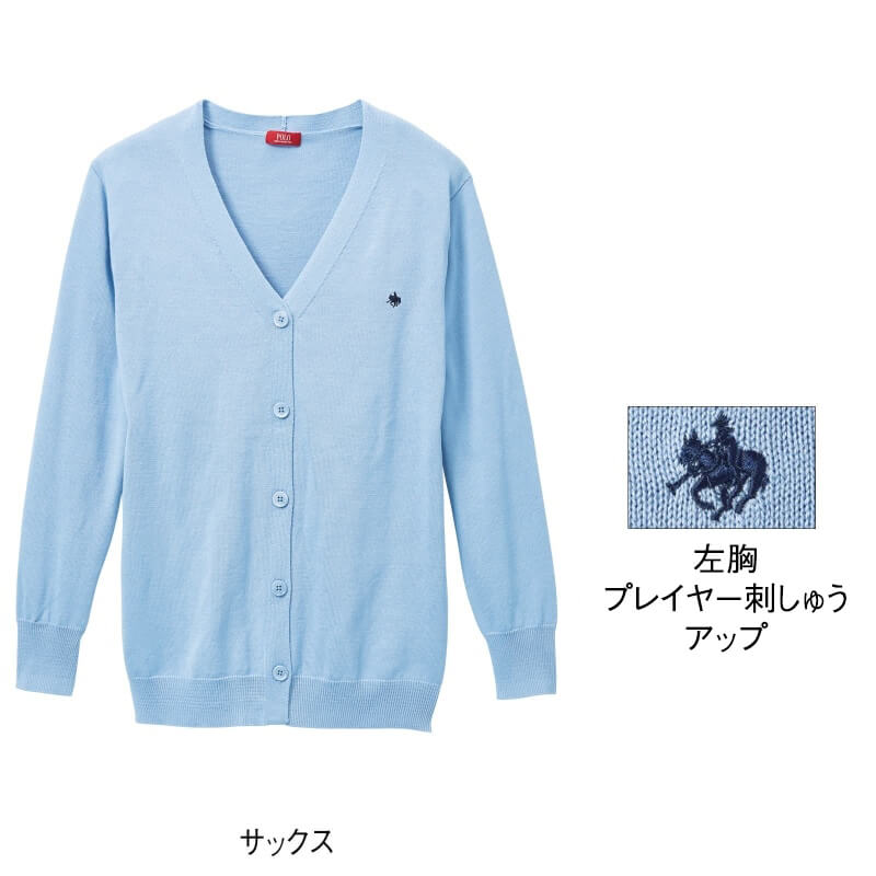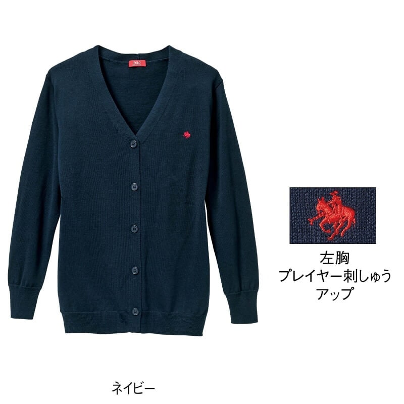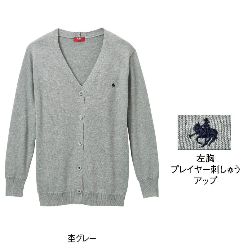 - > <POLO BCS>胸元ワンポイント刺しゅう綿混カーディガン