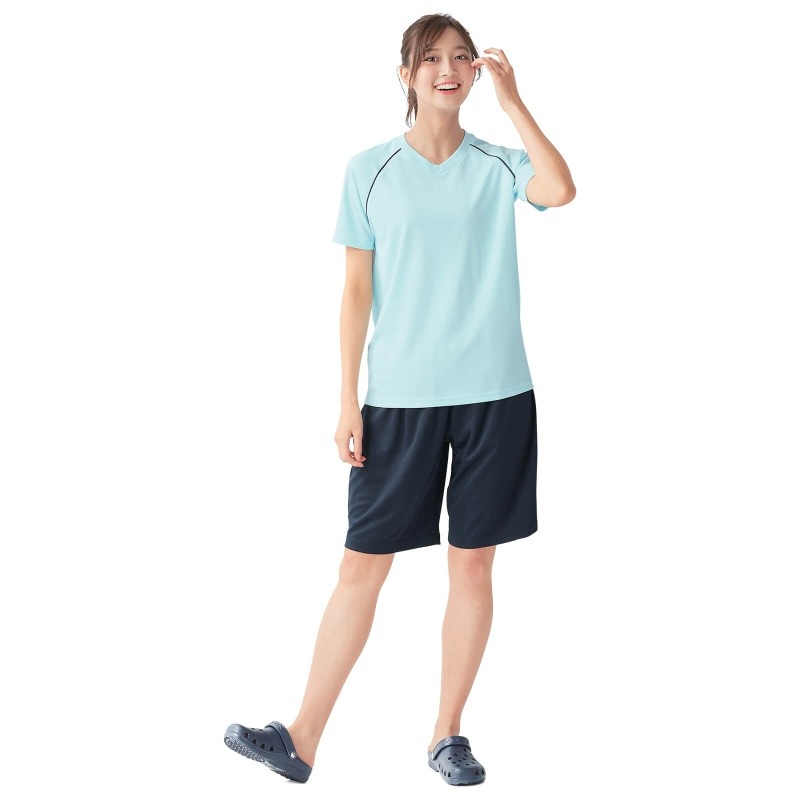 - > ★はっ水加工!パイピング使いドライメッシュTシャツ(男女兼用)