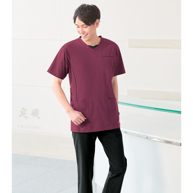 Vネックが浅いスクラブを探していました。ネイビーかブラックか迷いましたが、他でネイビーを購入したのでこちらはブラックにしました。デザイン&配色ともにイメージ通りでした。そして何より、ストレッチが効いていて動きやすくて気に入りました。被りタイプですが問題なく脱ぎ着のストレスなどなく、着心地がとても良いです。色違いで追加購入をしてもいいなと思うくらい良いお品でした。投稿者:まぁー性別/属性:女性年代:50代身長(cm):156~160体重(kg):46~50購入したサイズ:ブラック×バーガンディ/S -