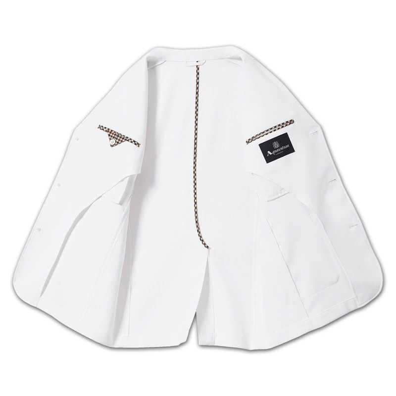 首から肩へのラインが美しく寄りそうようにボディを包む基本に忠実な本格仕立てのテーラーの精神を受け継ぐドクタージャケットです。