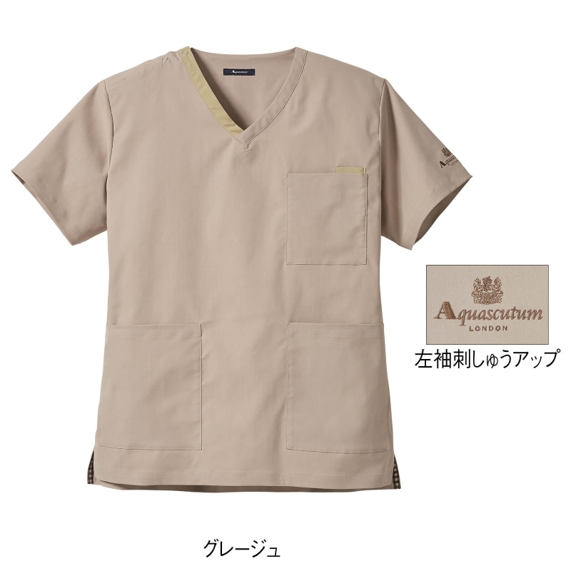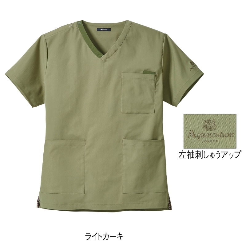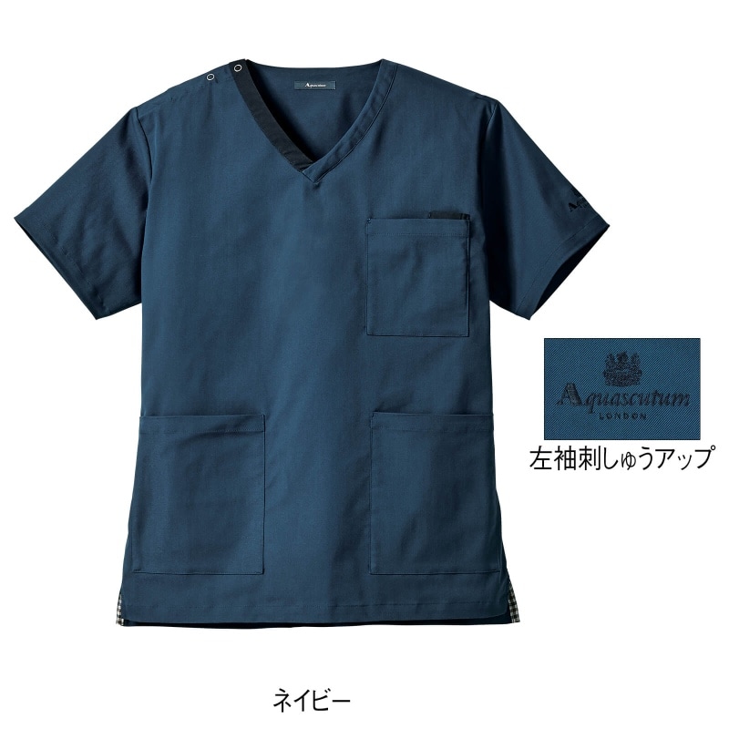 - > ★<アクアスキュータム>コットンライク クロスVネックストレッチスクラブ(ユニセックス)