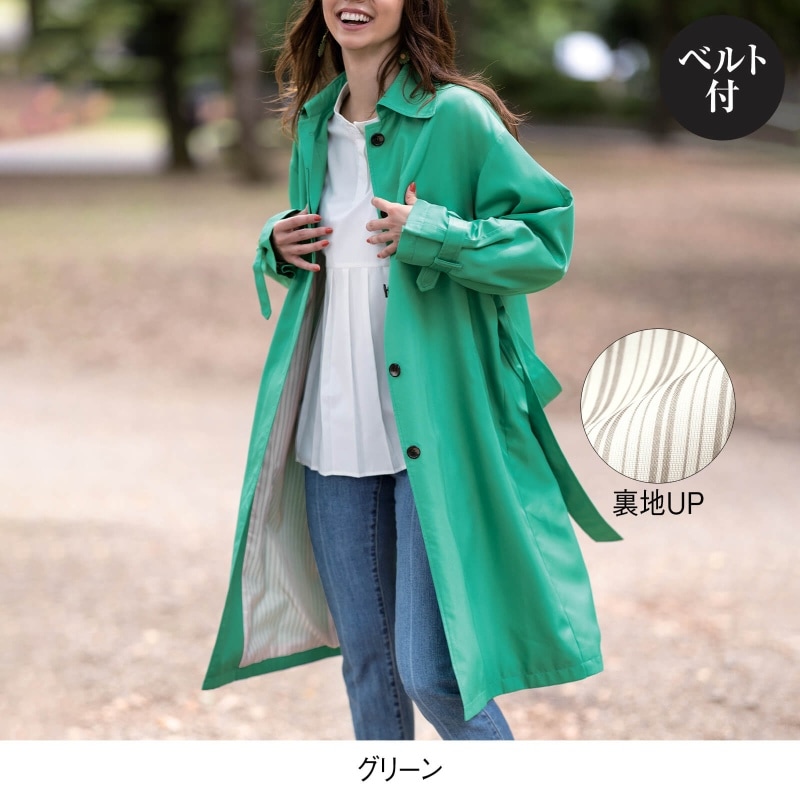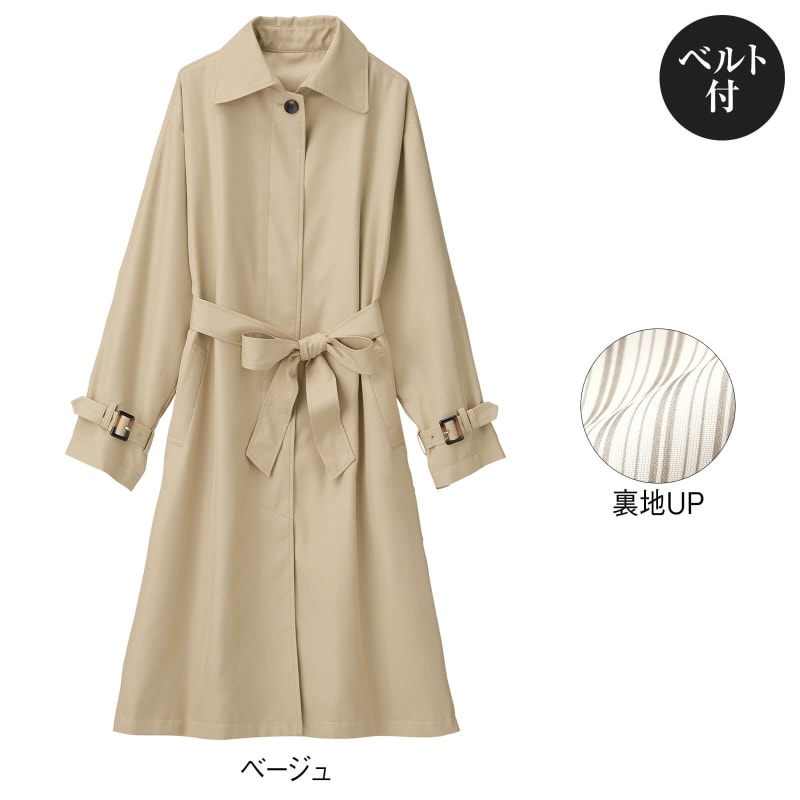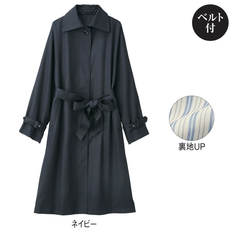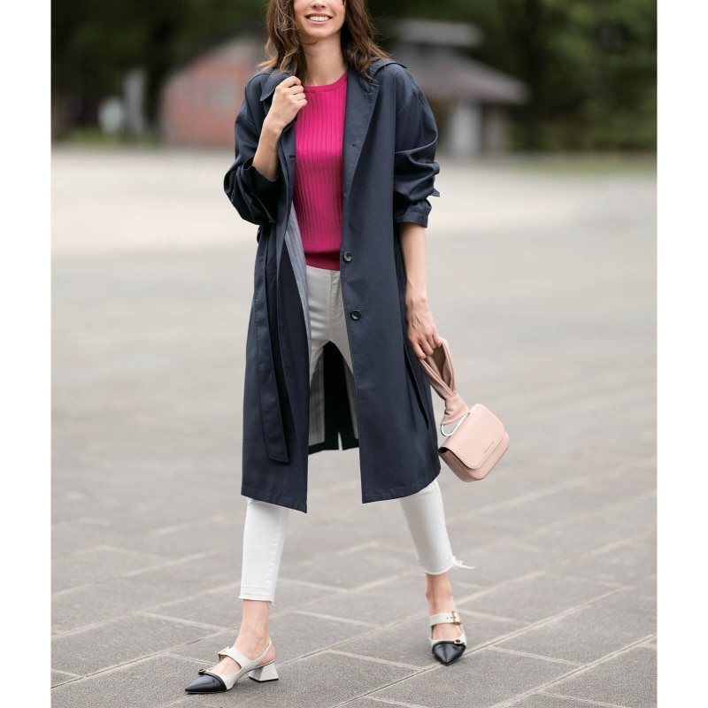 ほどよい光沢感がある、しなやかな素材に花粉対策機能を備えたベーシックなコート。