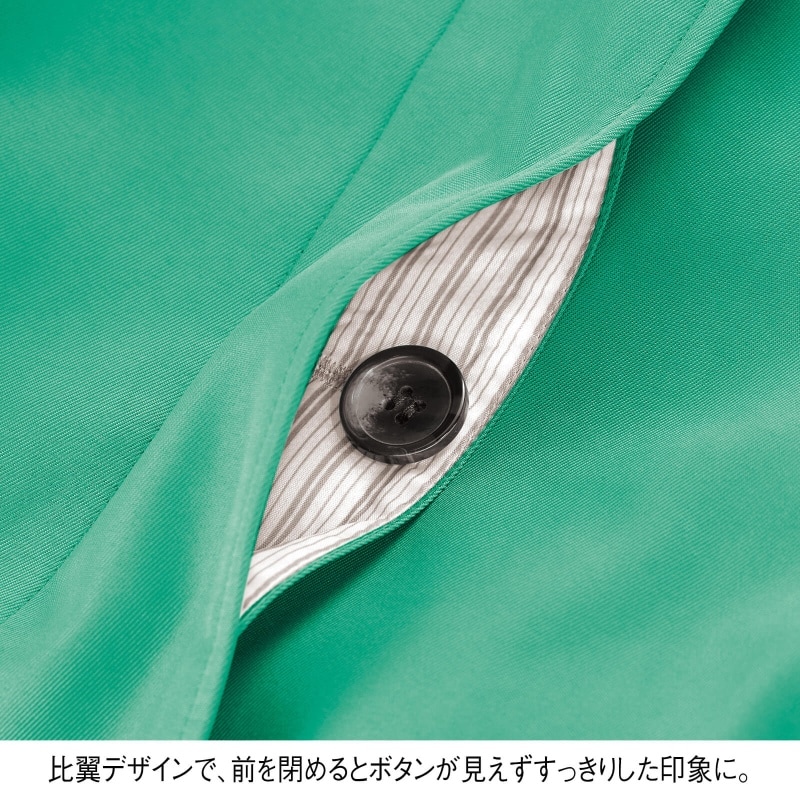 比翼デザインで、前を閉めるとボタンが見えずすっきりした印象に。