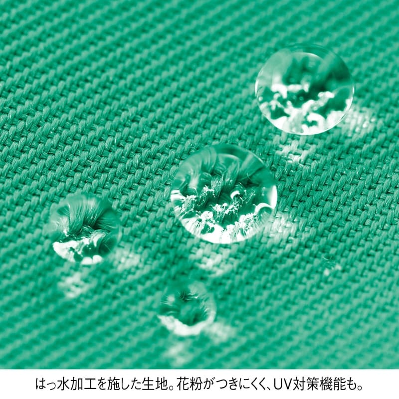 はっ水加工を施した生地。花粉がつきにくく、UV対策機能も。