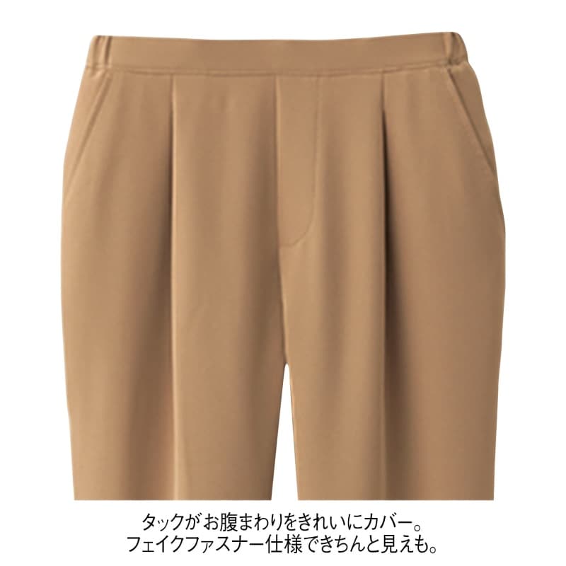 お尻や太ももまわりはタックが入っているので、ゆったりカバー。