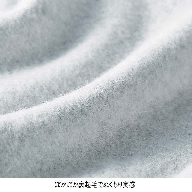 裏起毛でお尻まですっぽりの丈で温かいです。ただ、下に綿素材のTシャツを着た時、起毛の白い繊維が結構付きました。下に着る服の素材は気を付けた方が良いかもしれません。