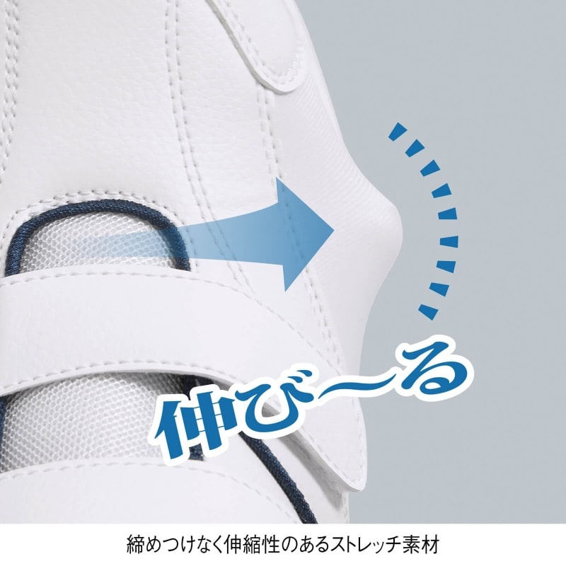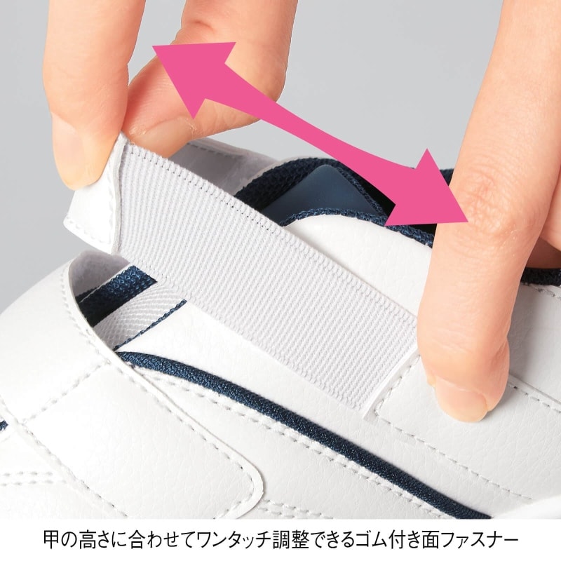 ・甲の高さに合わせてワンタッチ調整できるゴム付き面ファスナー