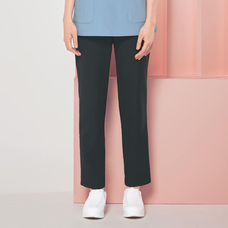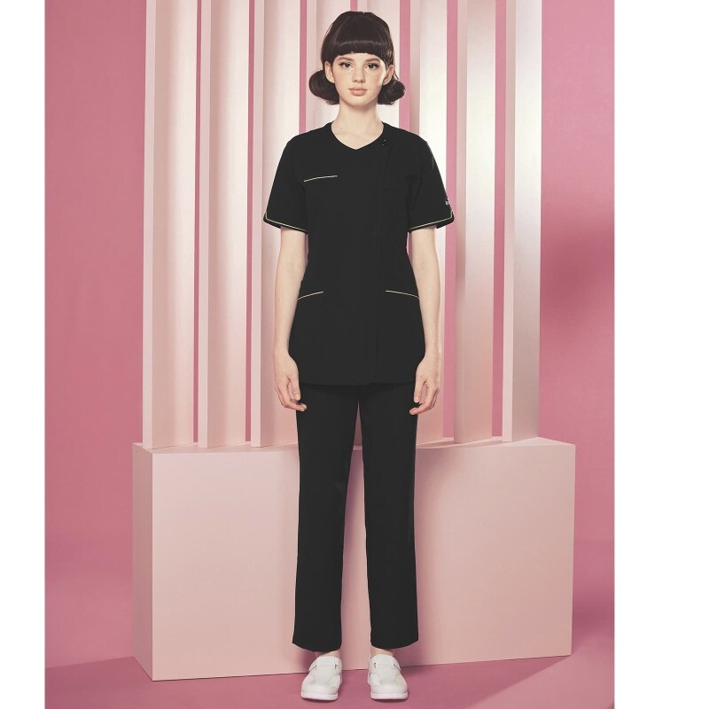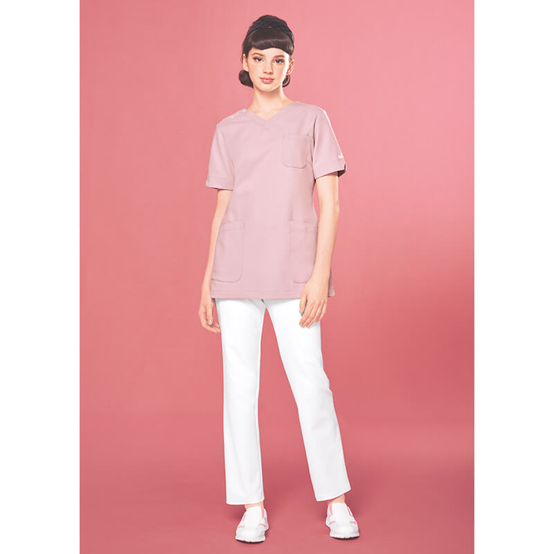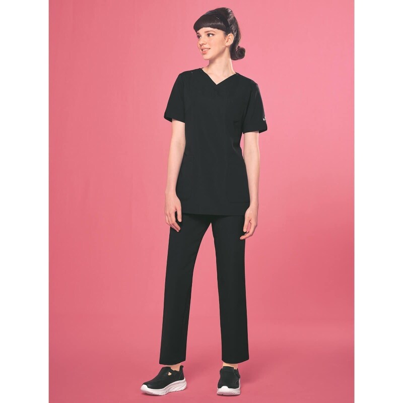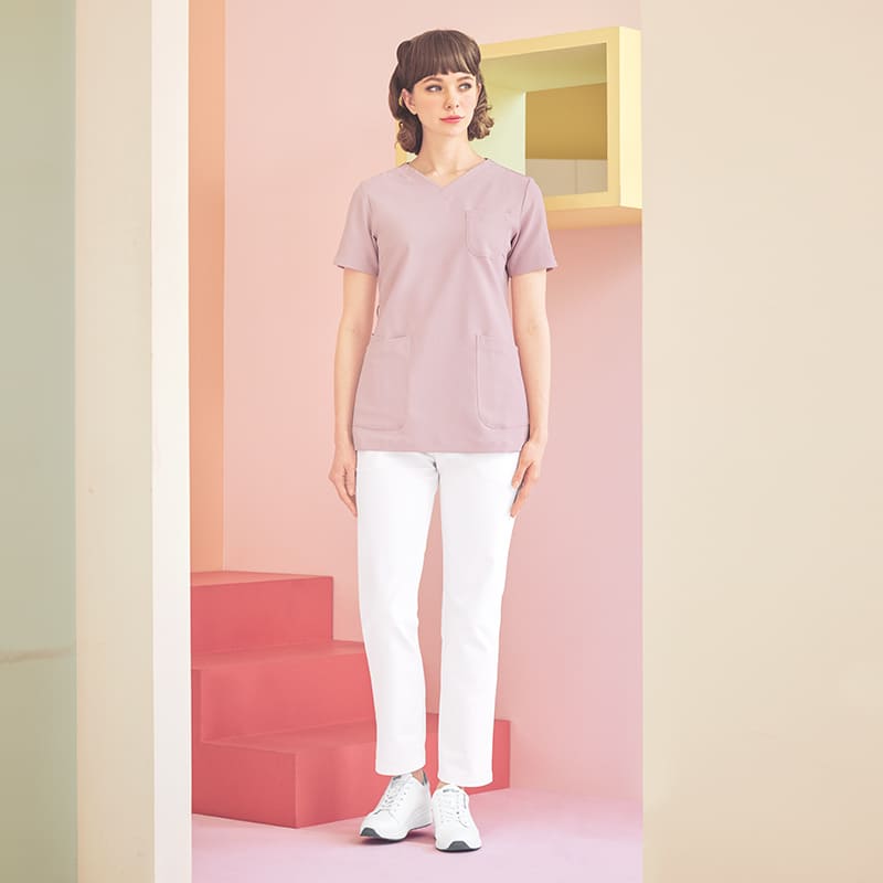 高級な印象を放ち、しなやかで肌ざわりよく着映えする、シルキーな風合いの上質素材。動きやすいストレッチ性に加え、心地よさや清潔感を約束する数々の機能を備えています。