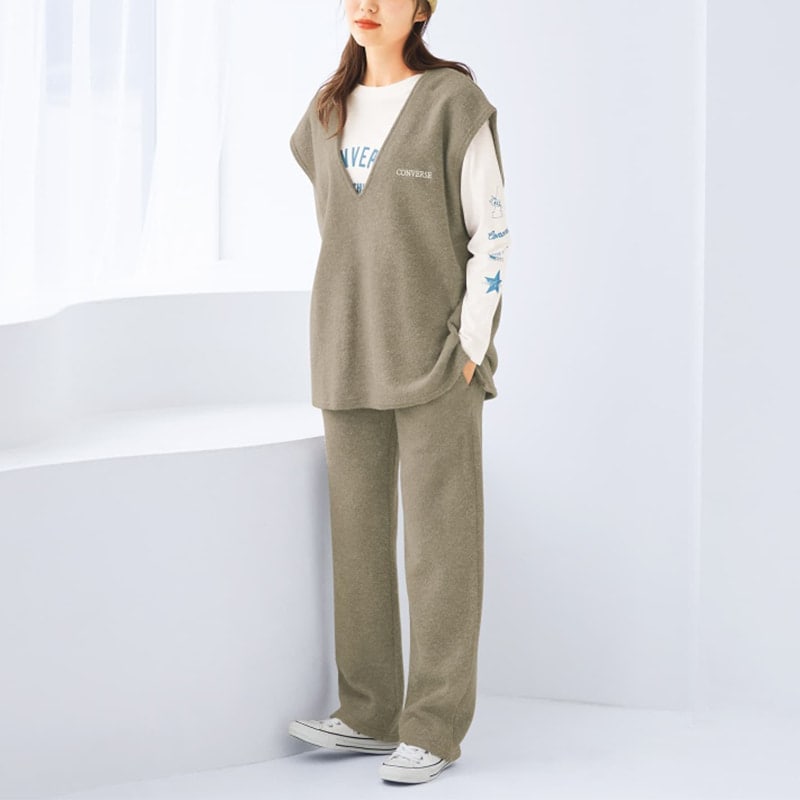 ゆったり旬の着こなし!ニットソーVネックベスト