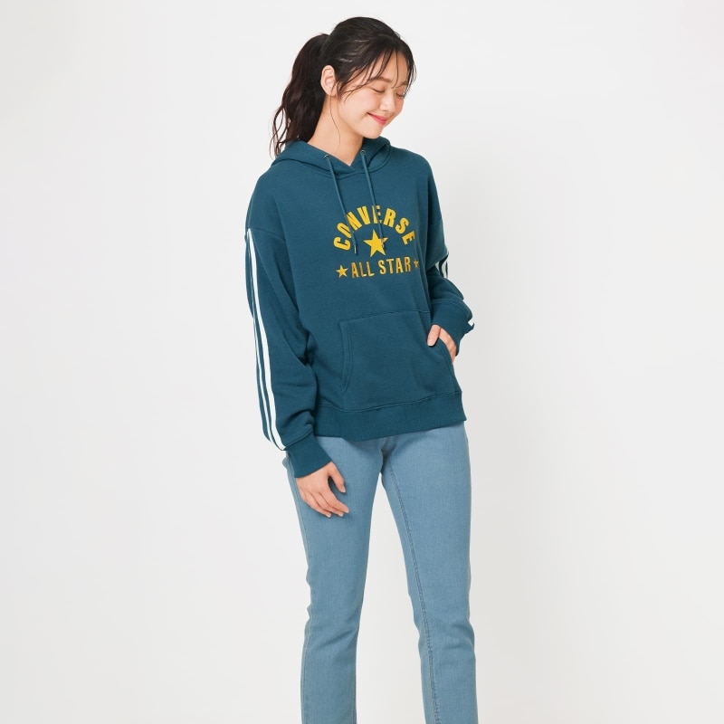 - > <CONVERSE>裏起毛袖ラインプルパーカー