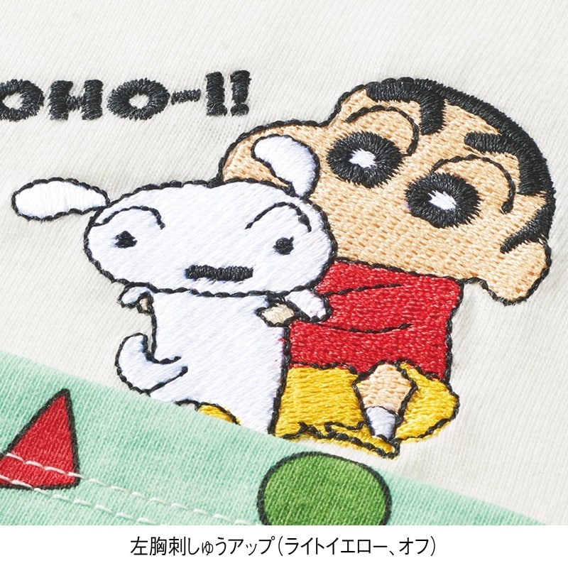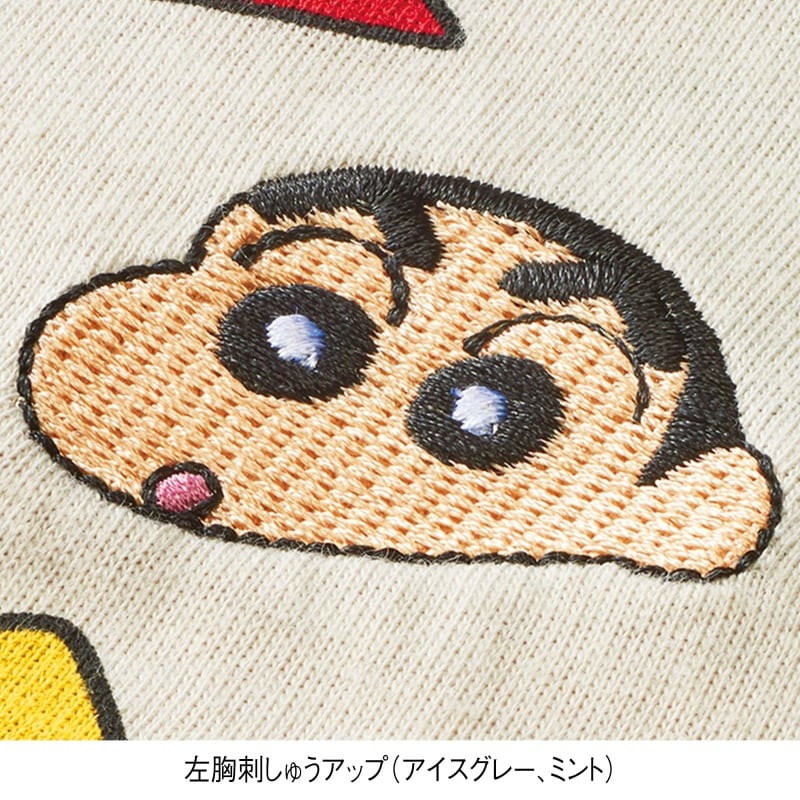 総柄を使用した楽しい2デザインをワイドシルエットでしんちゃんはいずれも刺しゅうで登場!