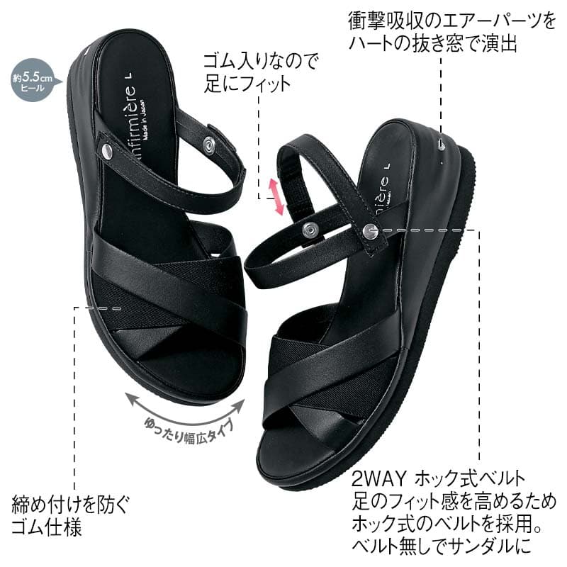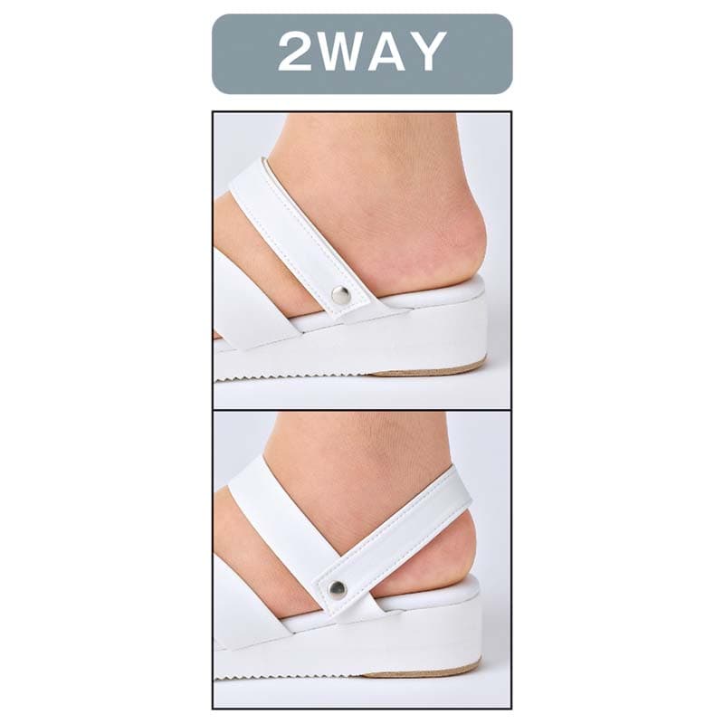 足のフィット感を高めるため2WAYホック式のベルトを採用。ベルト無しでサンダルに