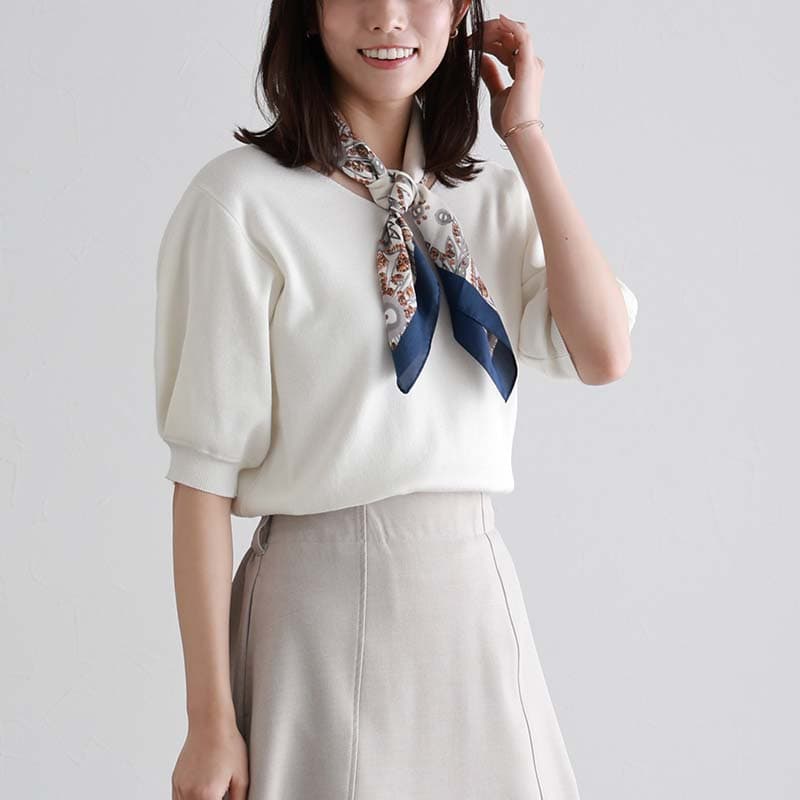 パフスリーブとシンプルな身頃で、華奢見えするメリハリあるシルエットに。