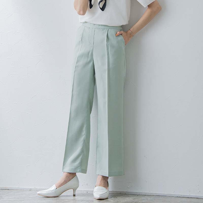 少しゆとりを持たせたストレートラインとセンタープレスで、すっきり見えするシルエット。