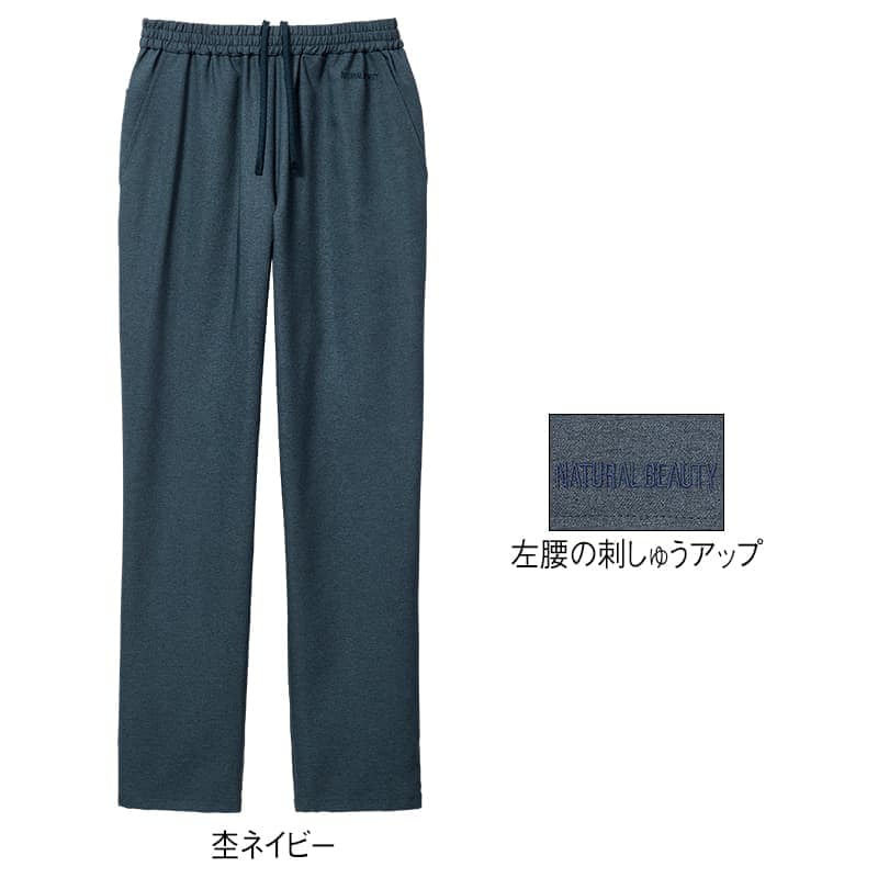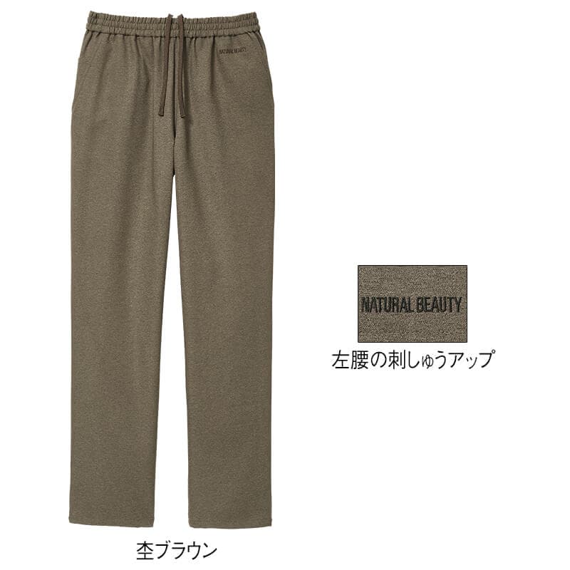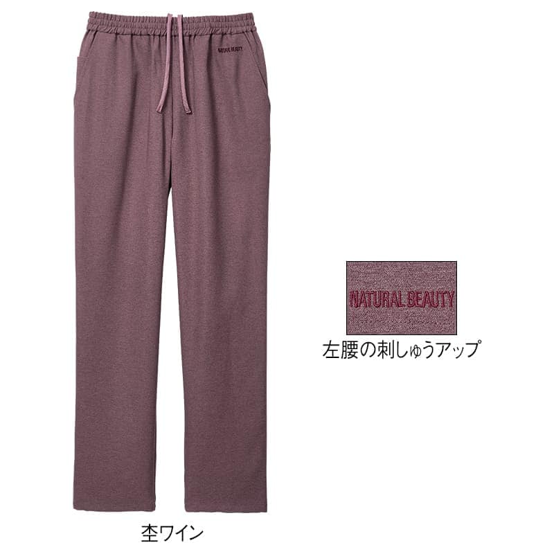 - > ★<ナチュラルビューティー>ウエスト総ゴムストレッチ杢ストレートパンツ