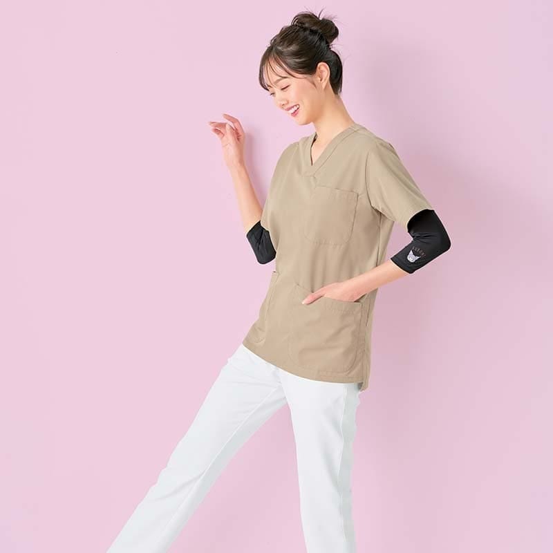 袖のワンポイントプリントがスクラブからチラ見えして可愛い!