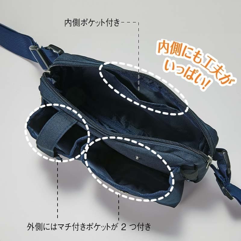 マチ付きポケットでボリュームのある小物もすっぽり入る!