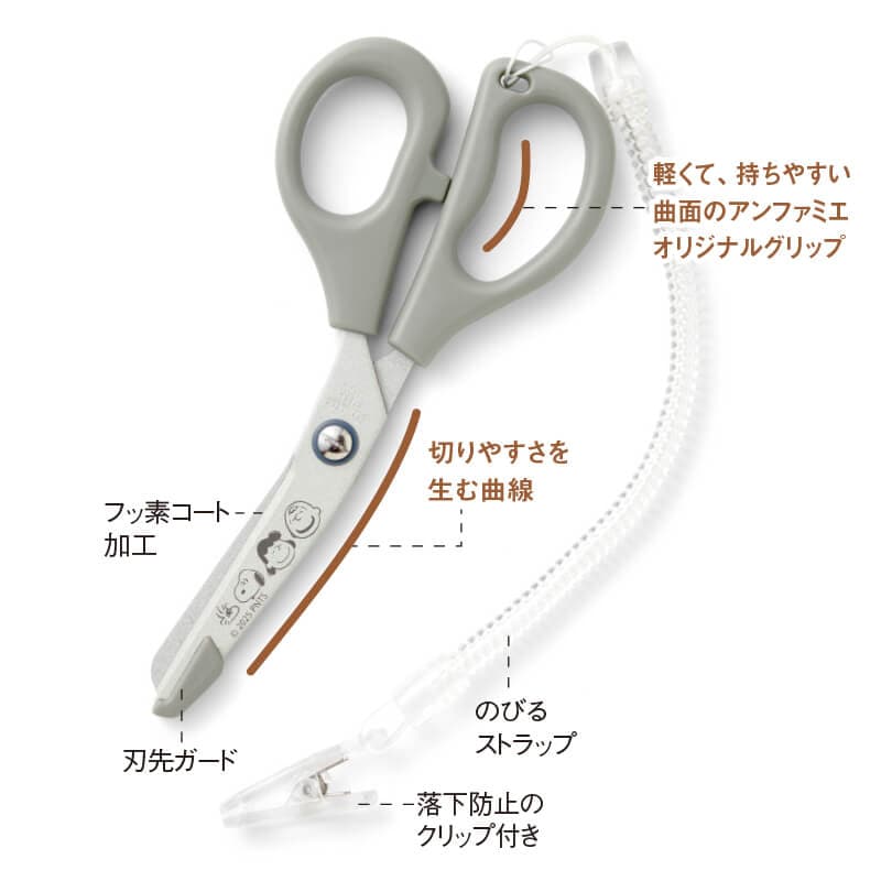 - > ★<スヌーピー>バンジーストラップ付きフッ素コート加工ハサミ