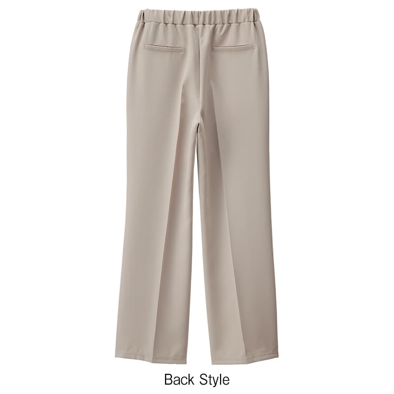 スウェットやレギンスのように気軽にはけるゴムウエストながら、キレイめにも装える優秀デザイン。