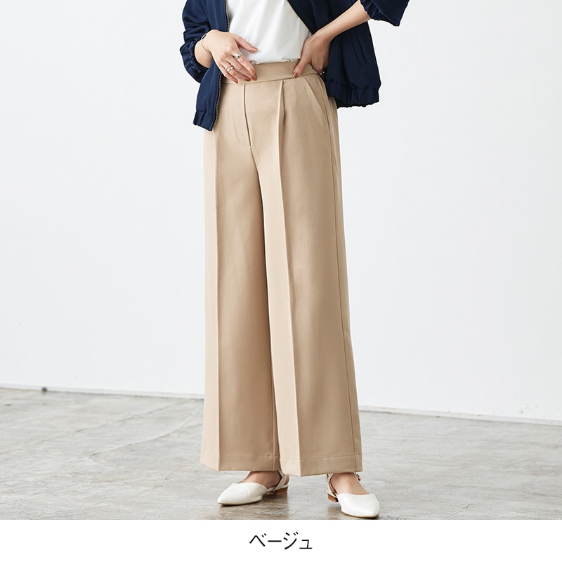足のラインを拾いにくいワイドシルエットで、リラクシーながらもセンタープレスがきちんと感を演出してくれる一枚。