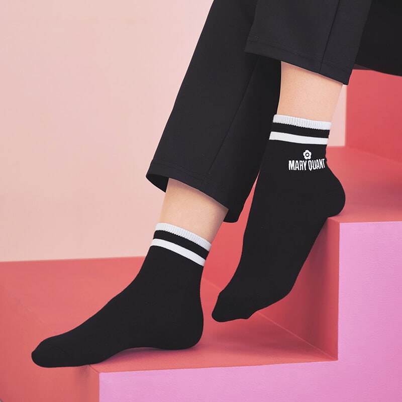 - > ★<マリークワント>配色ライン刺繍入りソックス