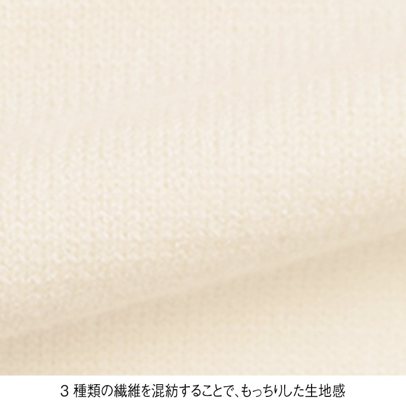3種類の繊維を混紡することで、ずっと触っていたくなるようなもっちりとした生地感に仕上がりました。