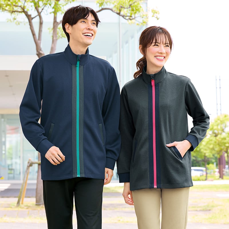 - > ★柔らかストレッチ素材ブルゾンジャケット(男女兼用)