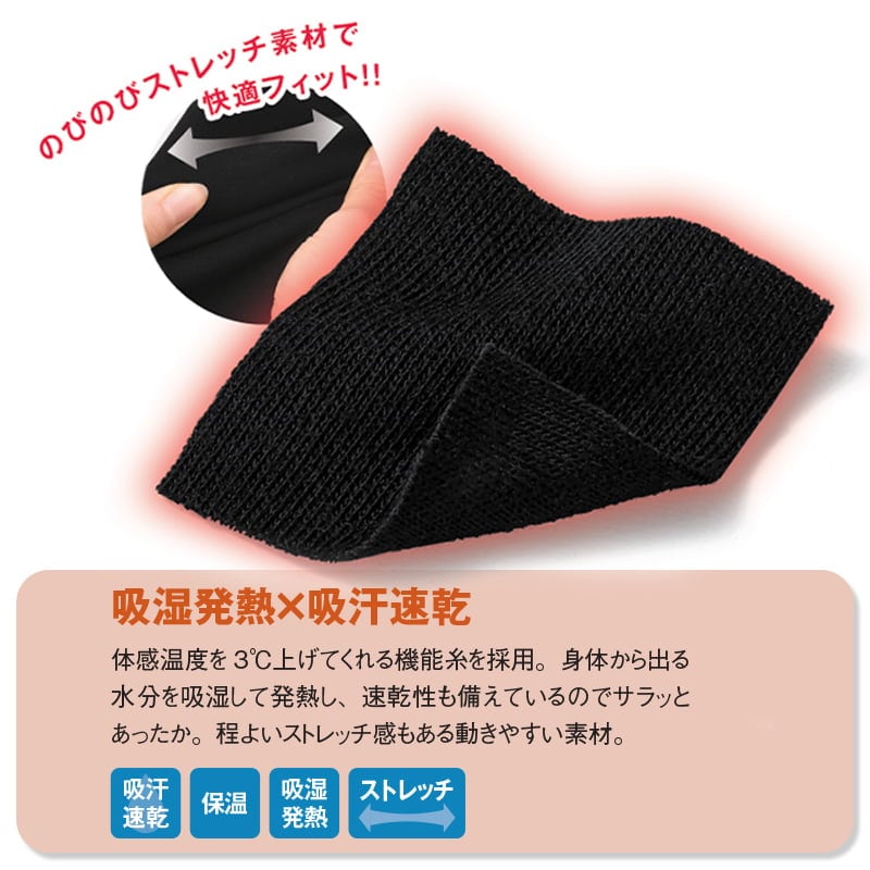 吸湿発熱の機能糸が内側から発熱し、体感温度を3度UP。