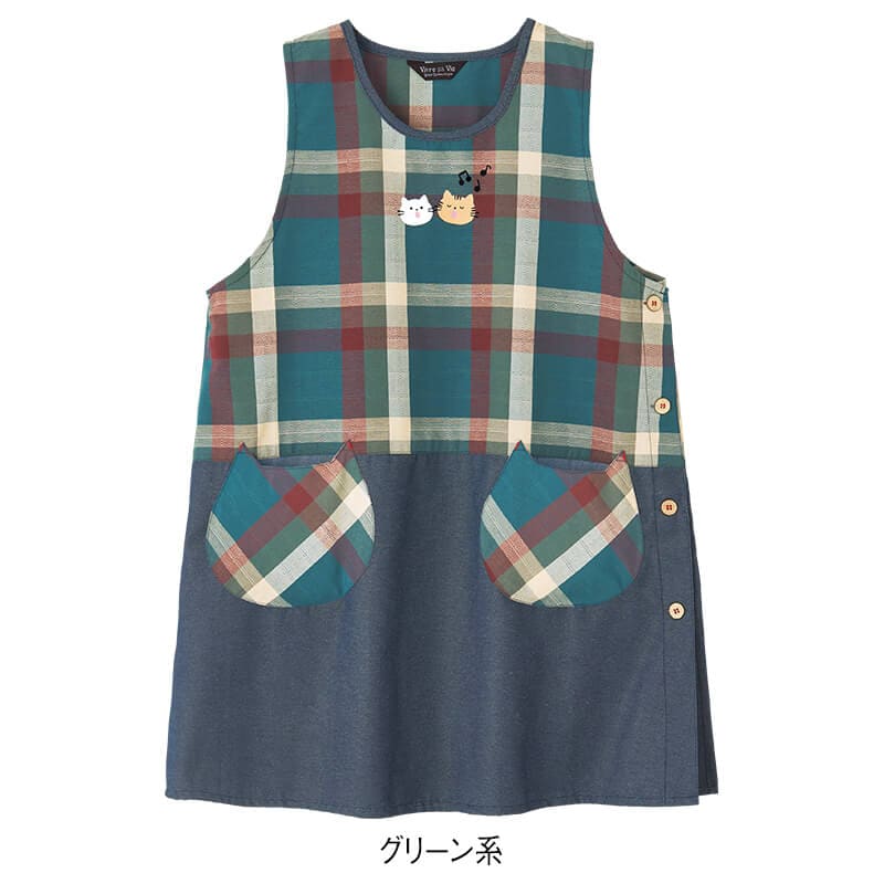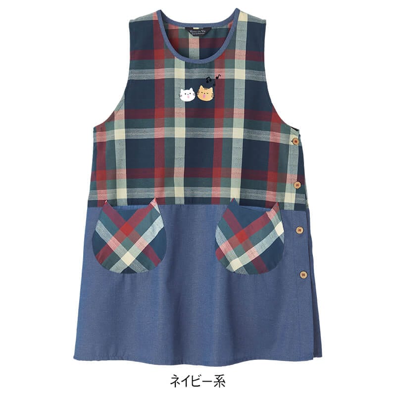 胸元のネコのプリントにも注目!ネコ型ポケット付きチュニックエプロン