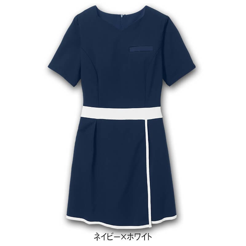 衿元のスリットデザインや配色使いがおしゃれなデザインチュニック