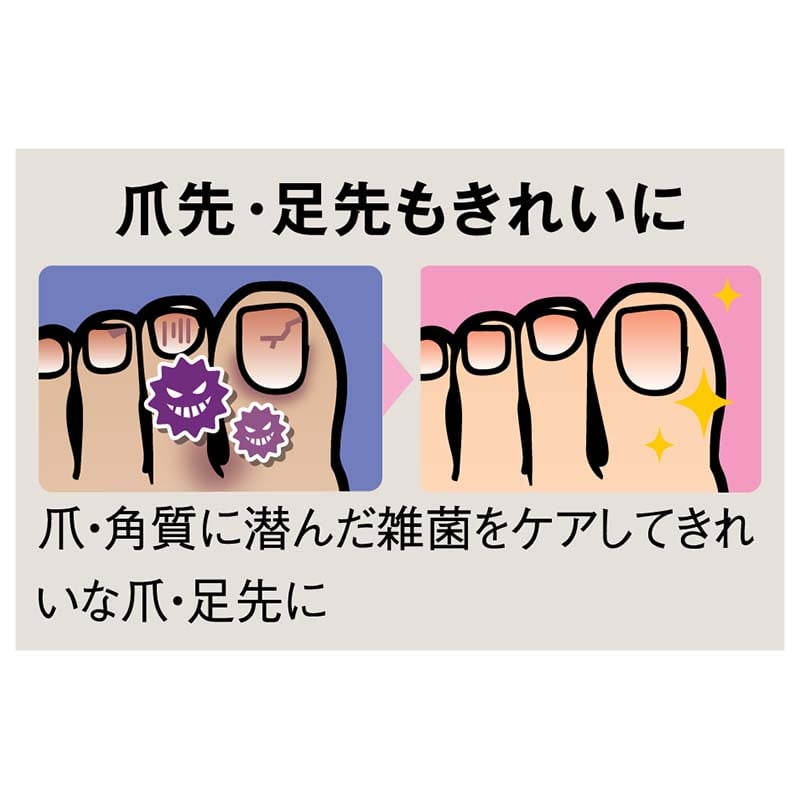 指の付け根や爪の生え際など雑菌が増えやすい部分も逃がさず、サラサラの使い心地で爪も足全体も清潔に。