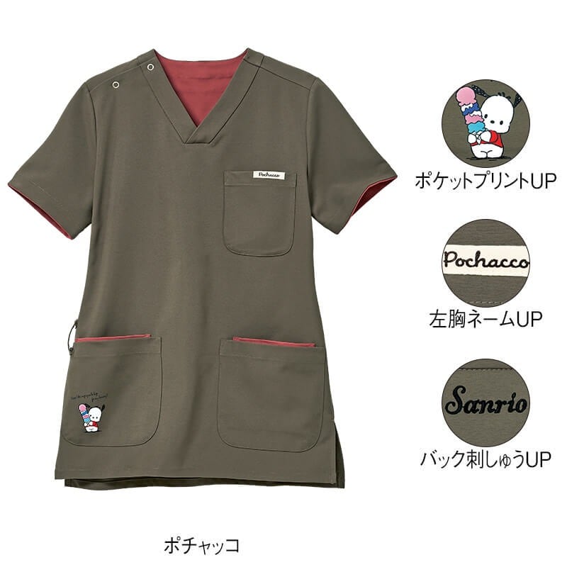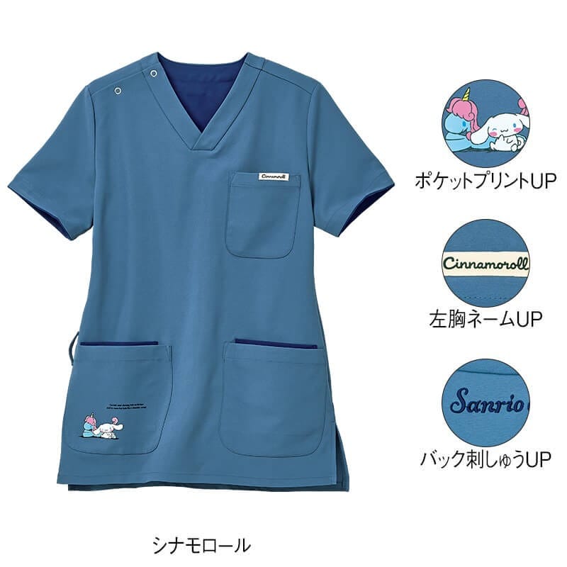 ★<サンリオキャラクターズ>ポケットネーム付き配色ストレッチスクラブ