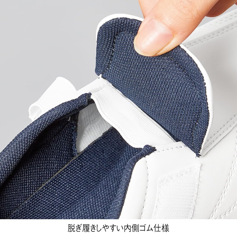 ベルト内側にゴムが内蔵されているので、面ファスナーを開けなくてもスルリと履ける