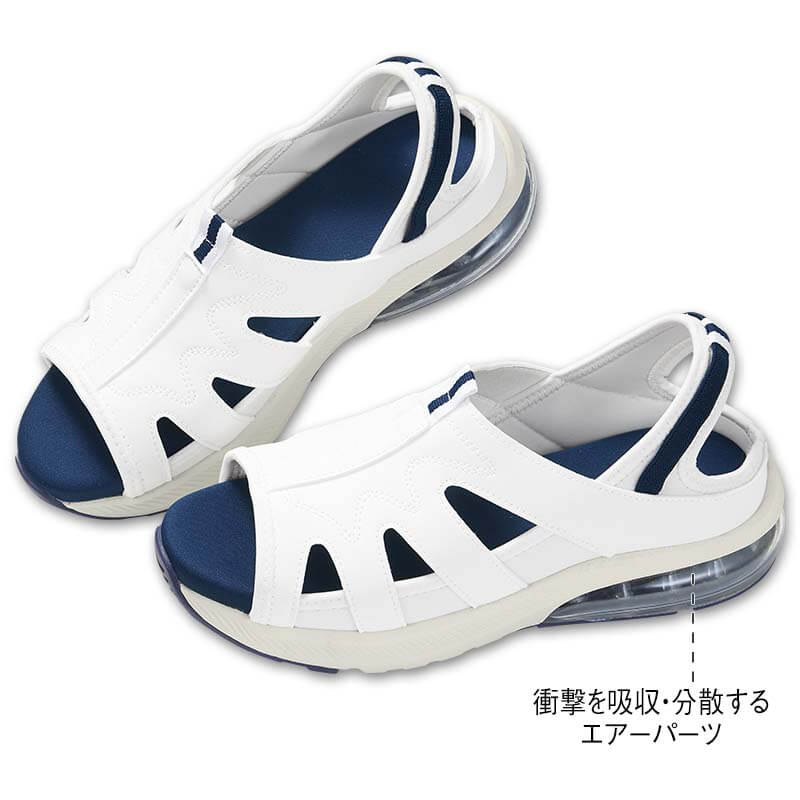 高反発エアーとクッション中敷きで歩く衝撃を吸収し疲労軽減に繋がります。